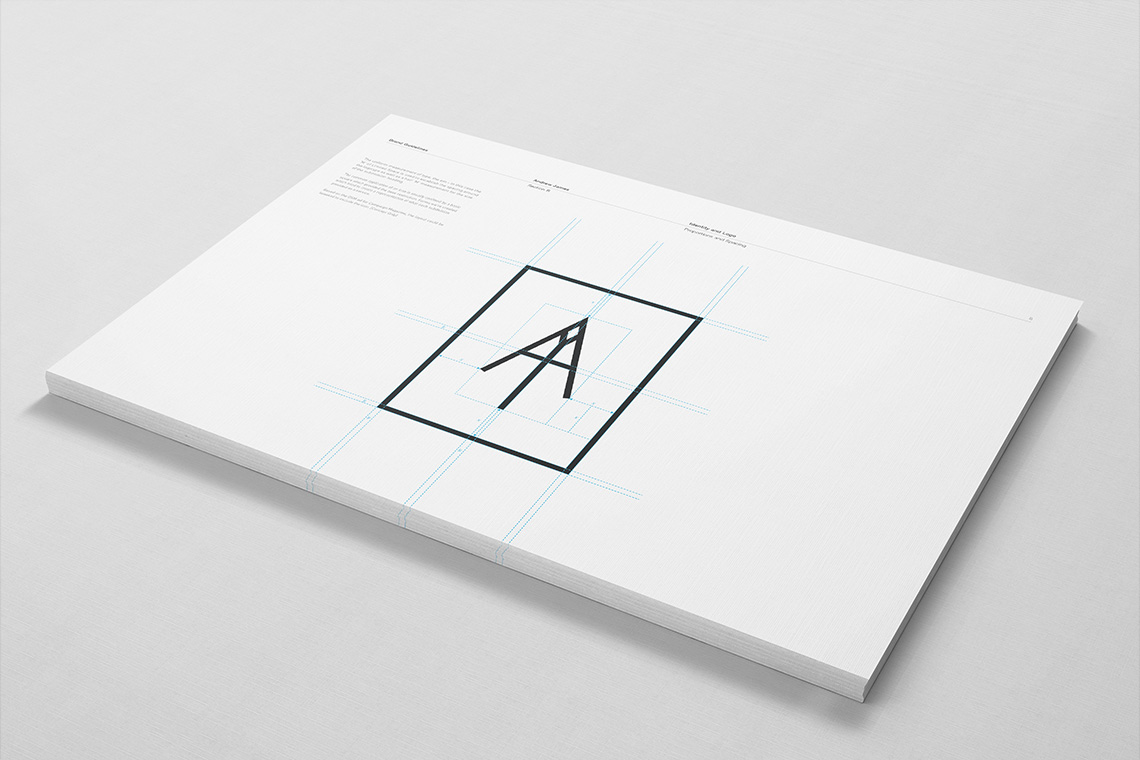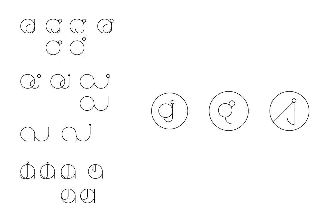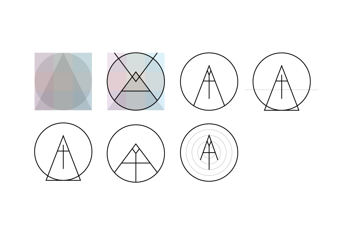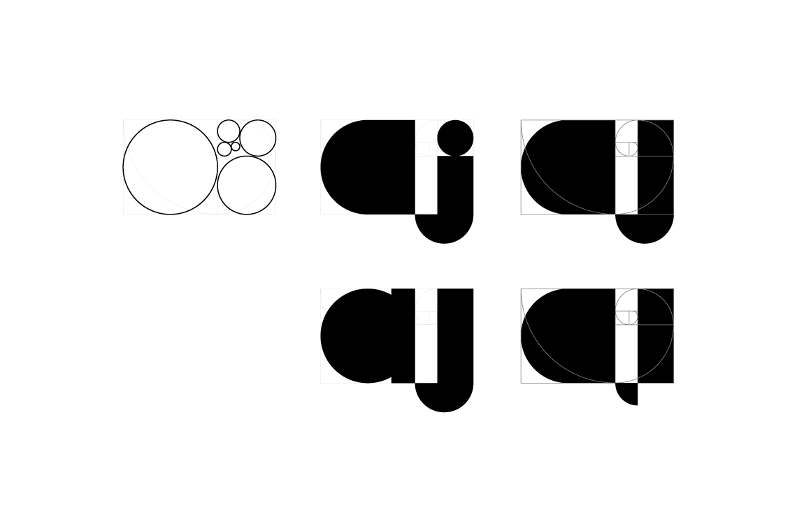 Design is full of luck. A fortuitous blend of an uppercase A and lowercase J created a graphic not too dissimilar from a pencil and compass like symbol. A few minor refinements and it began to purr quite nicely.