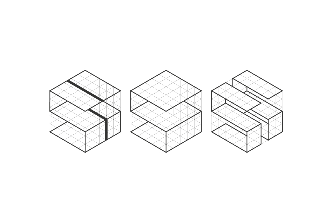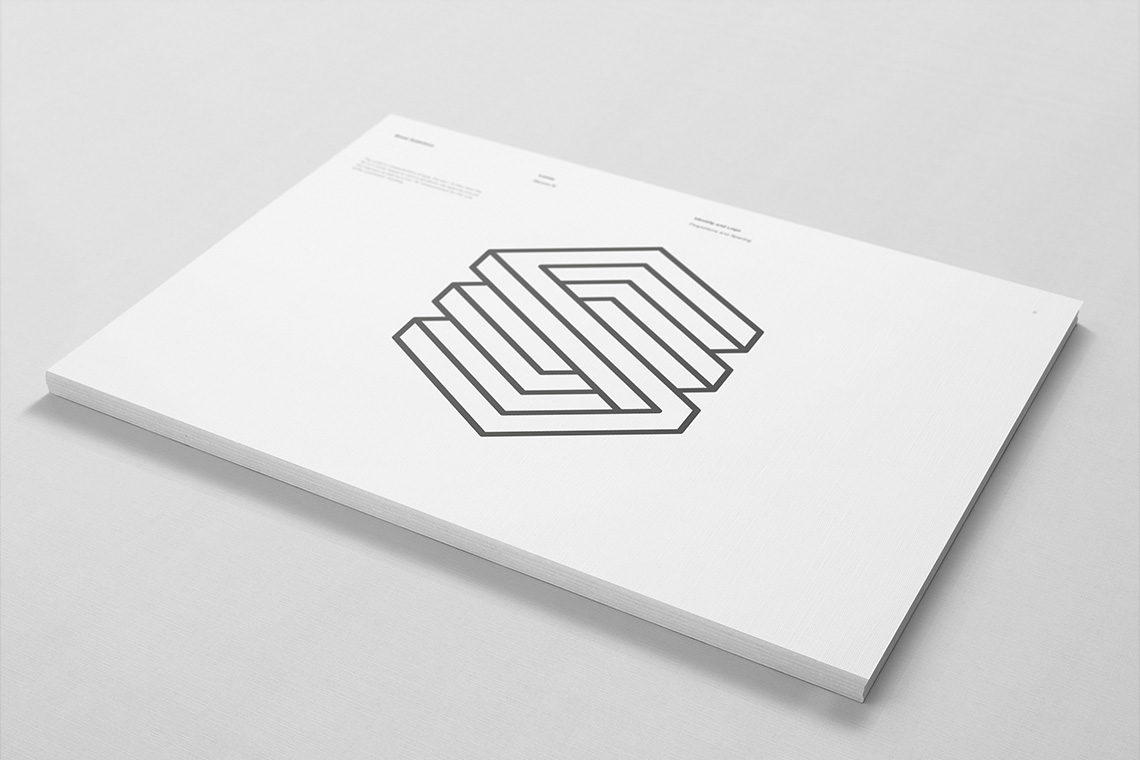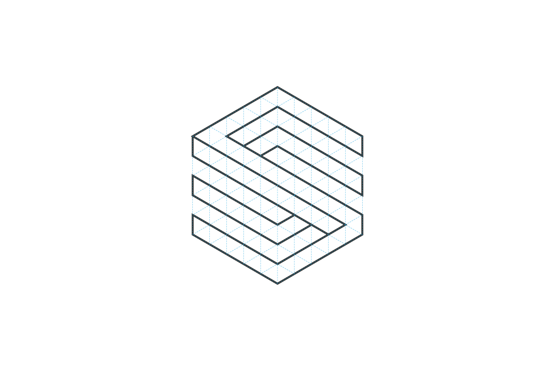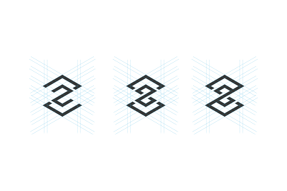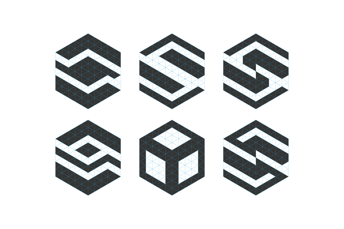 The graphic was based on the idea of working within a 3D space, a link to the companies discipline while also using the space to shape a monogram of the companies initials.